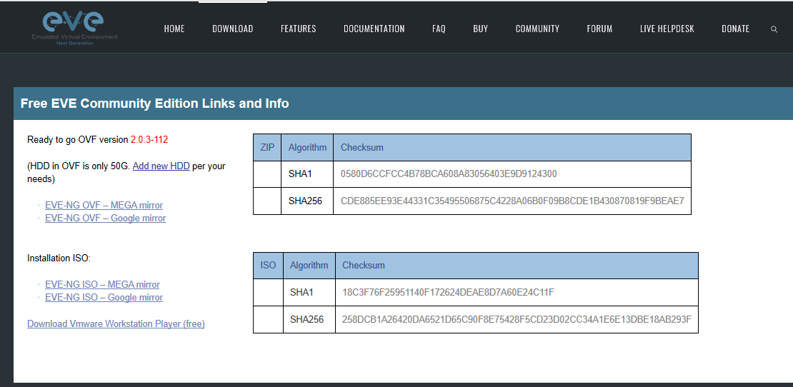 - EVE-NG OVF 다운(mega나 google 상관없음) - EVE community가 무료이므로 이것을 다운받기
