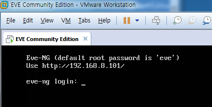 eve-vm power on id/password : root/eve