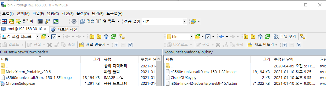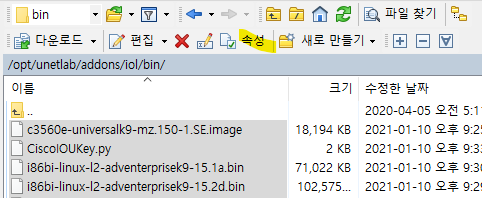 /opt/unetlab/addons/iol/bin/ 위치로 .bin network image 파일 옮김