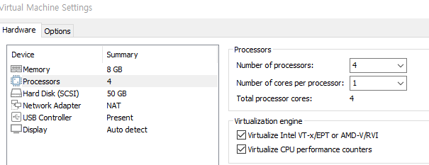virtualize inter vt-x/ept or amd-v/rvi 체크