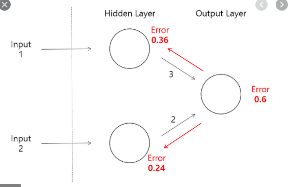 * 오차역전파 법(backpropagation) : 단층 및 다층 퍼셉트론의 단점(최적의 weight와 bias)을 해결함.