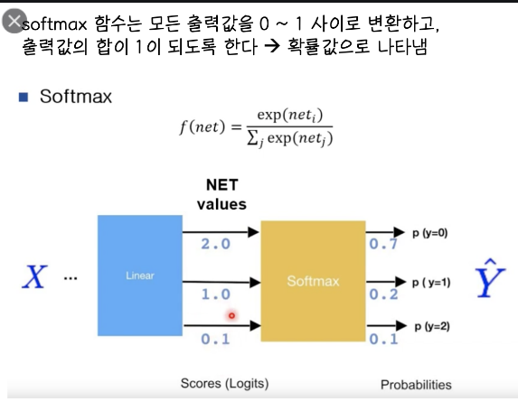 * 현업에서 분류가 많아지면 성능에 문제가 있어 softmax 사용안하고 출력값중 가장 큰값을 사용하기도 함.