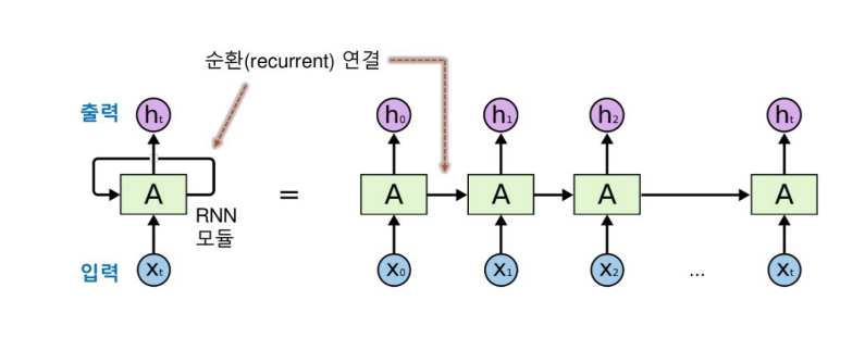 RNN은 다른 모델과 다르게 은닉층의 출력이 같은 은닉층의 입력으로 들어감