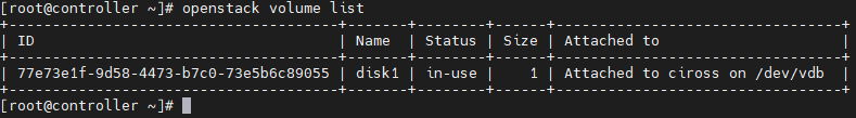 # openstack server add volume cirros disk1