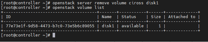 # openstack server remove volume cirros disk1