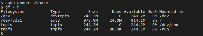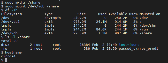 cirros_prod1 /share 폴더 볼륨 해제 ----> cirros4 /share 폴더로 마운트
