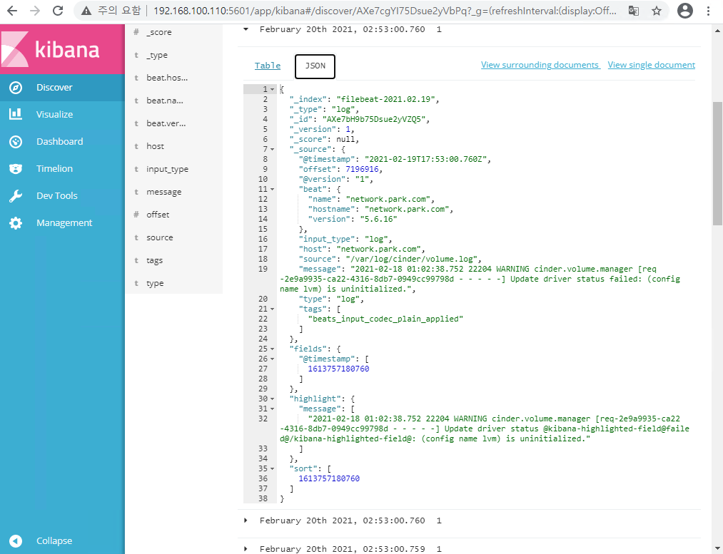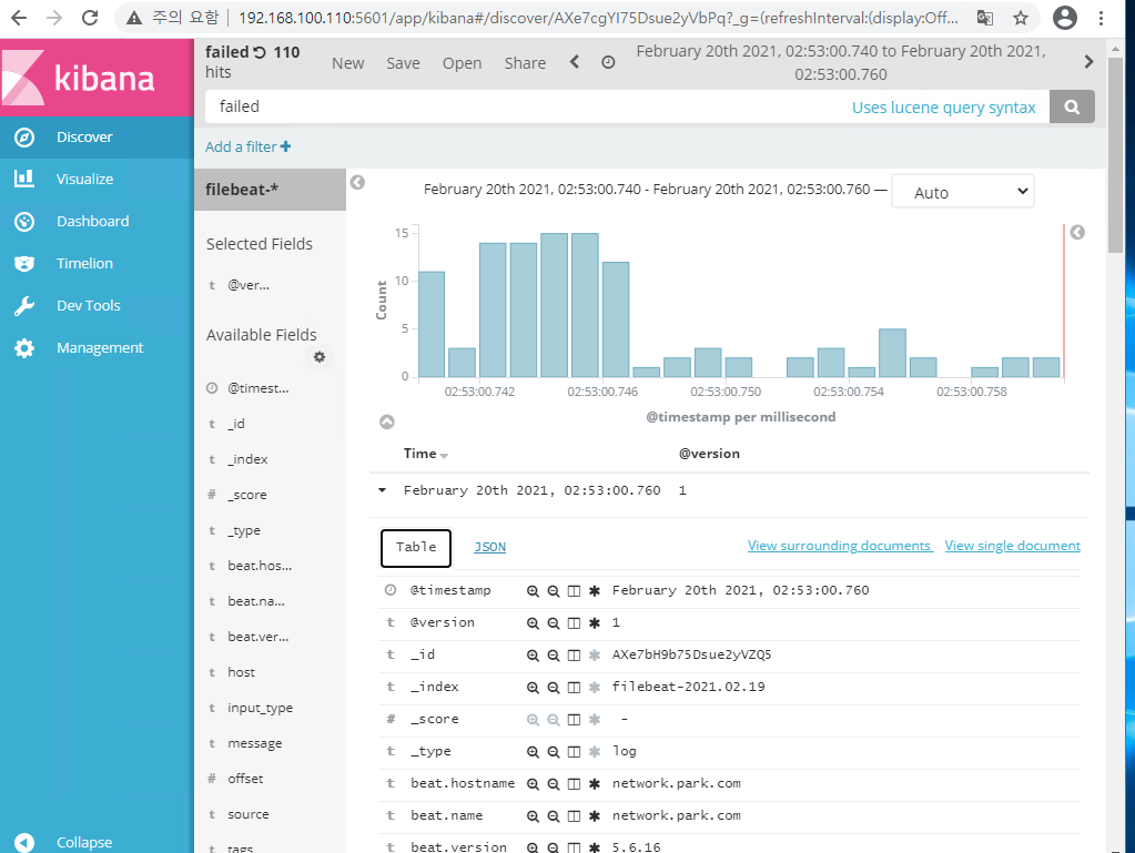 elasticsearch { hosts => ["192.168.100.110:9200"]