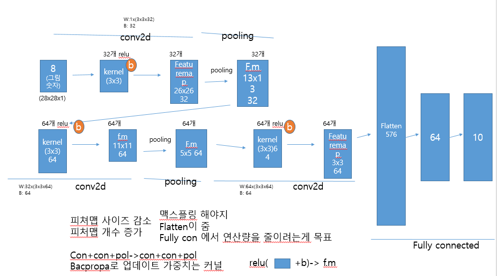 filters = 컨볼루션 레이어 결과의 피처맵 수=커널 갯수 홀수로 많이 사용 (3,5, 11)