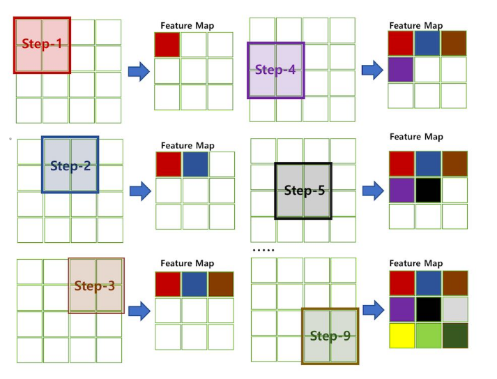 stride-(1,1)한칸씩 (1,2)옆으로 두칸씩