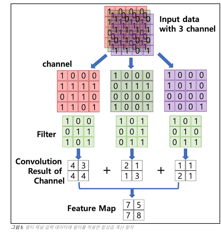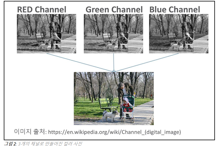 채널 : Red 사진, Green 사진, Blue 사진 각각을 channel 이고 각각 필터가 있어서 각각 적용됨