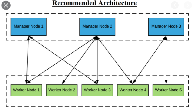 - master 노드에서는 클러스터 관리 작업을 하고 클러스터 상태 유지, 스케쥴링 서비스 swarm http api endpoint 제공 및 컨테이너 실행 역할도 함