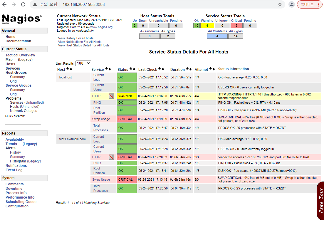 <nagios-core-server kubernetes pod에서 확인>