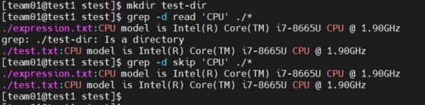 | -a, --text | 바이너리 파일에서 해당 패턴을 검색 |