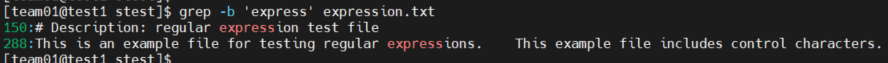 | -b, --byte-offset | 패턴이 포함된 출력라인의 바이트 수를 라인의 제일 앞부분에 함께 보여줌 |