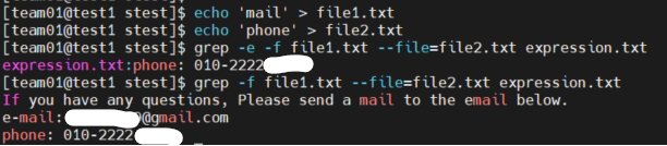 -f : 패턴이 저장되어 있는 파일을 여러개 이용해 검색