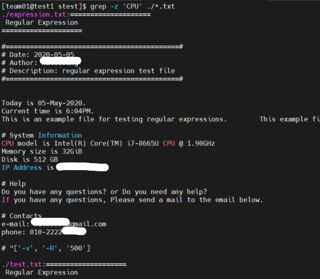 | -A 라인 수, --after-context=라인 수 | 패턴이 포함된 라인 후에 선언한 라인 수에 해당하는 라인 만큼 뒤로 라인을 추가 |