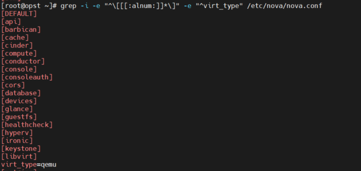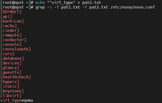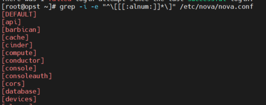 cat으로 확인한 nova.conf 파일 내용이 grep의 검색 대상임