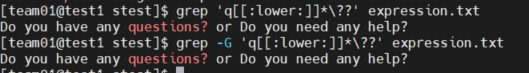 #-E 옵션 사용( 정규표현식 ? 가 적용됨)