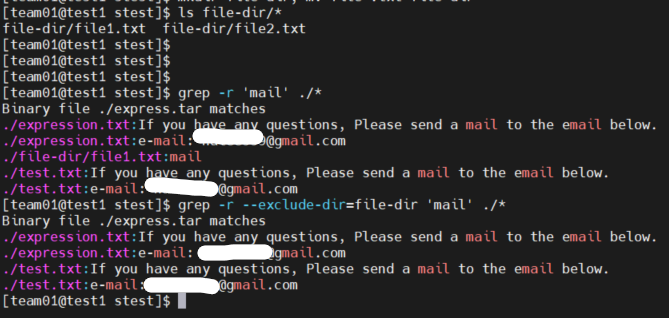 | --exclude-dir=DIR | 재귀검색에서 패턴 DIR과 일치하는 디렉토리 제외 |