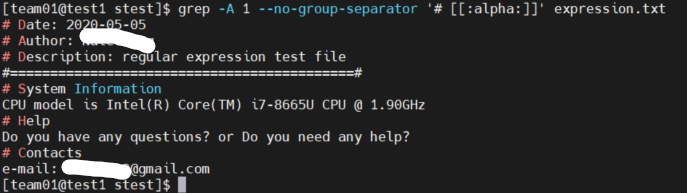 | --no-group-separator | 옵션 -A, -B, -C 와 함께 사용할때 기본적으로 패턴을 기준으로 그룹핑을 해주지만, 해당 옵션을 사용하면 그룹핑을 하지 않음 |