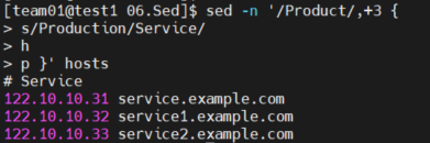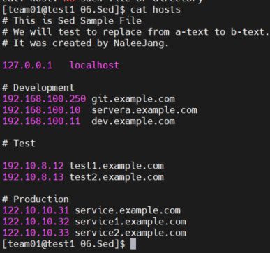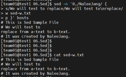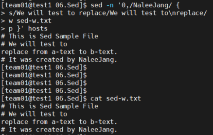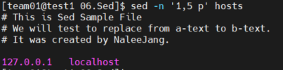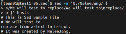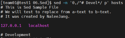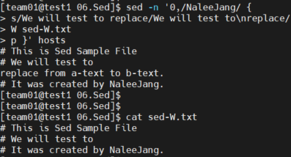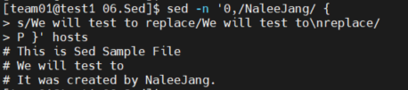 | #comment | 주석 | q | sed 스크립트 실행 종료 |