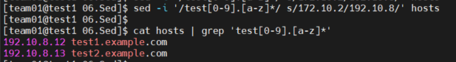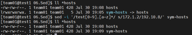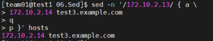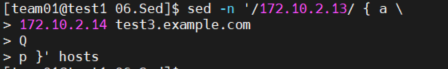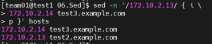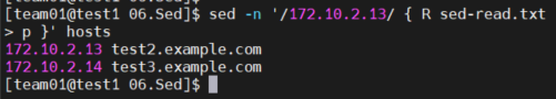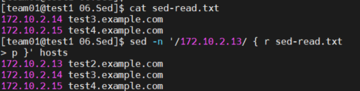 R옵션은 r과 비슷하다. 172.10.2.13 라인 뒤에 sed-read.txt 파일을 읽어 첫번째 새 IP만 추가