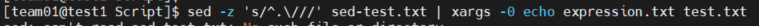 null값으로 구분된 파일명의 sed의 -z옵션을 사용하여 현재 디렉토리(./)기호 삭제