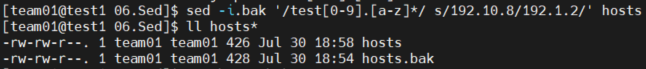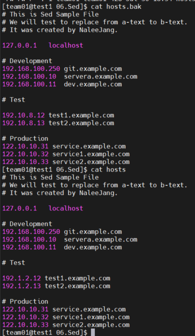 -i 옵션 사용하여 hosts ip를 바로 수정 , 기존 내용이 .bak 파일로 생성
