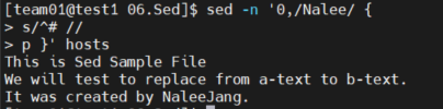 첫번째 라인부터 nalee가 포함된 라인의 #을 공백으로 변경후 출력
