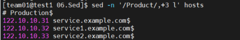 | addr1,~N | addr1이 포함된 라인을 기준으로 N라인까지가 범위이며, addr1은 정규 표현식이여야 하며, N은 숫자여야함 |