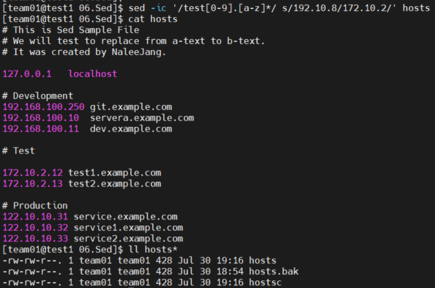 | --posix | POSIX확장 기능을 끔 POSIX확장을 지원하지 않는 시스템에서 sed를 실행해야 할 경우 POSIX확장 기능을 끄고, 스크립트를 검증할 수 있음 |
