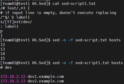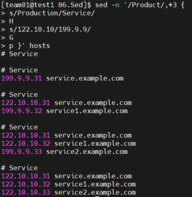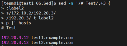 | { ... } | 블록 | Q | sed 스크립트 실행 종료 |