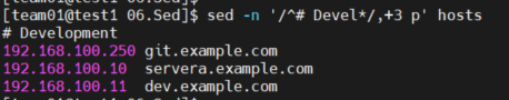 # Devel 부터 시작하는 라인에서 아래 3줄까지 출력