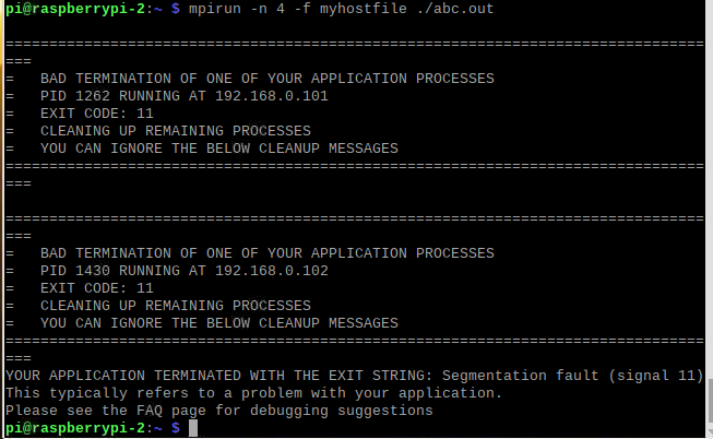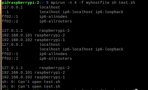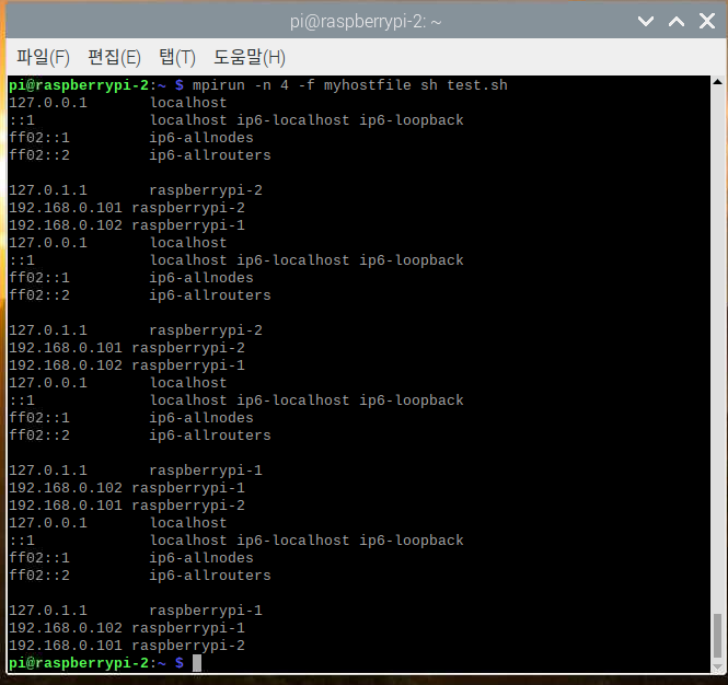 $mpirun -host 192.168.0.102 ~/a.out --> 상대방 주소