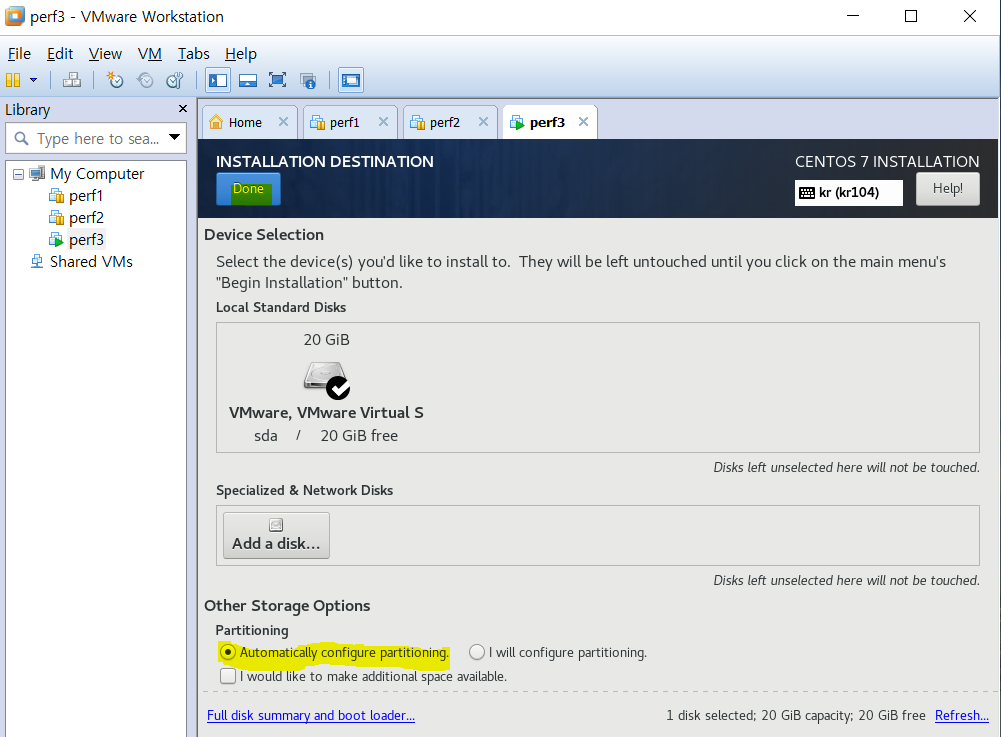 디스크 automatically configure partitioning.체크