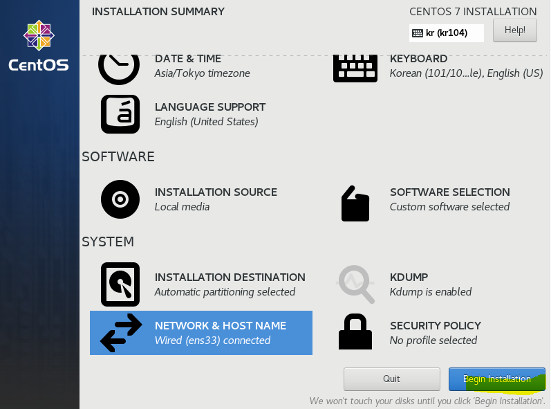 시간세팅, 디스크 세팅, 키보드,네트웍 세팅함