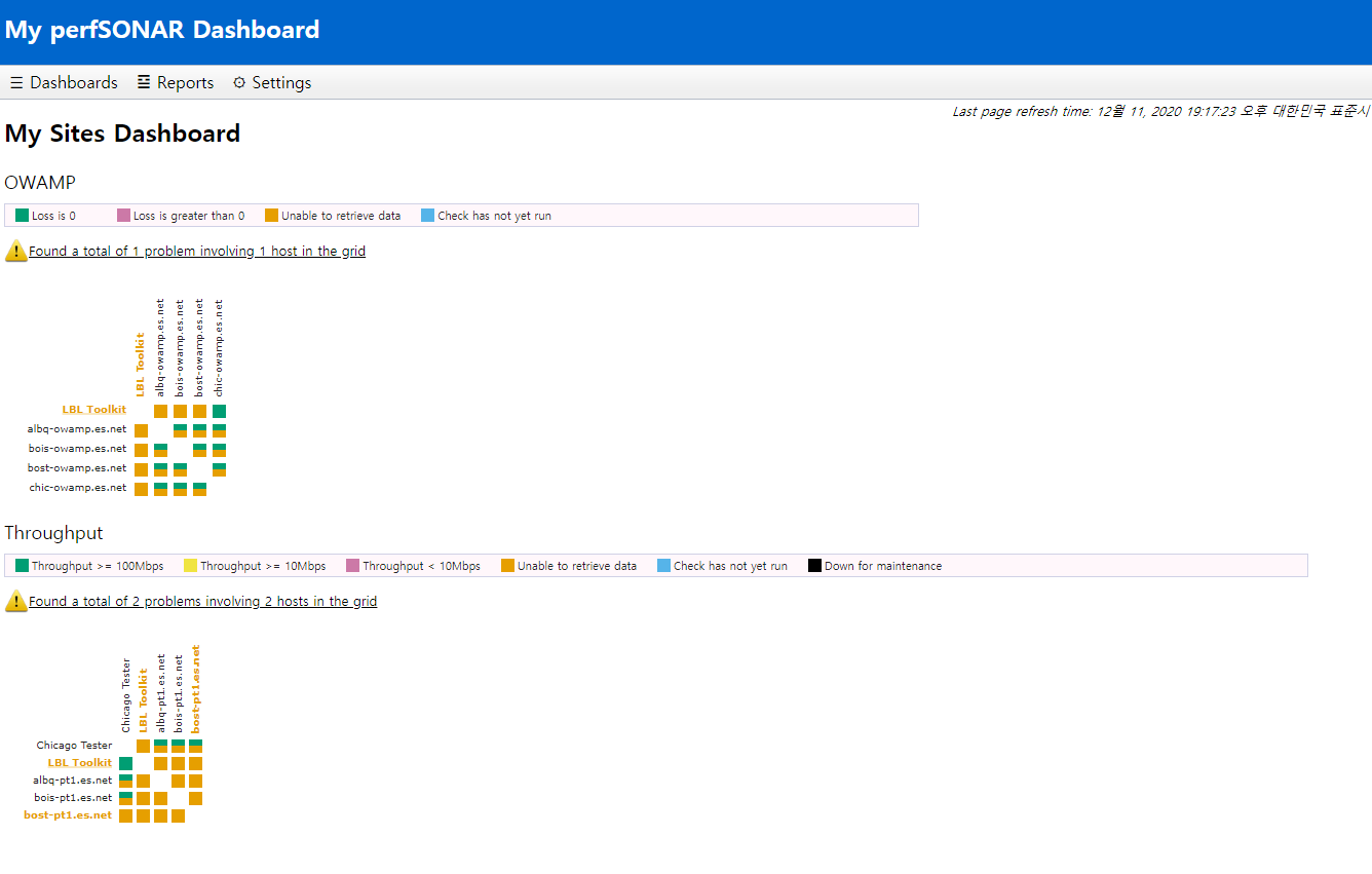 perfsonar : 네트웍 성능 모니터링 툴로 iperf 등을 사용하여 네트웍 실시간 감지
