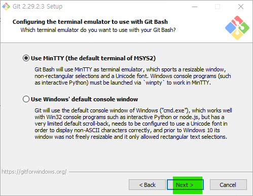 깃bash 터미널 쓸지 , 윈도우 콘솔 쓸지 여부
