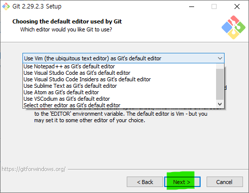 기본으로 사용할 tool 선택 아니면 vim 그대로 사용함.