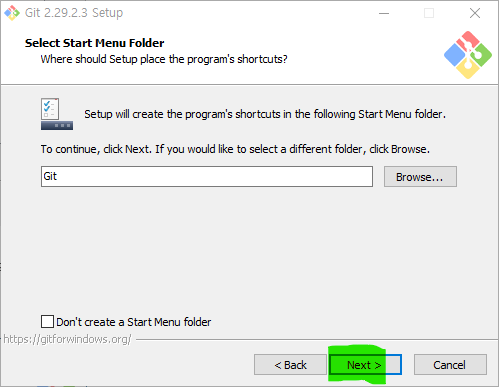 시작메뉴 빼려면 don't create a startmenu folde 체크