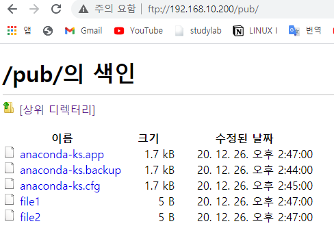 브라우저 창에서 ftp://192.168.10.200/ 접속